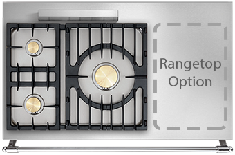 Om de kookplaat te vervolledigen is het mogelijk om aan de rechterzijde één extra kookelement in te bouwen. Hiervoor heeft u de keuze uit één grote gasbrander van 5kW, twee gasbranders van 3 of 4 kW, twee elektrische kookzones (inductie of vitrokeramisch), een elektrische lavasteengrill, een stoomkoker, een teppan yaki of een geïntegreerde friteuse.