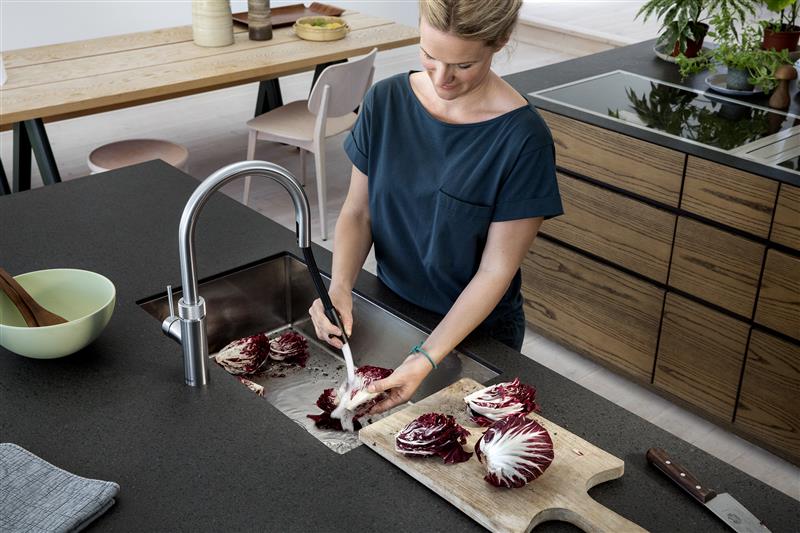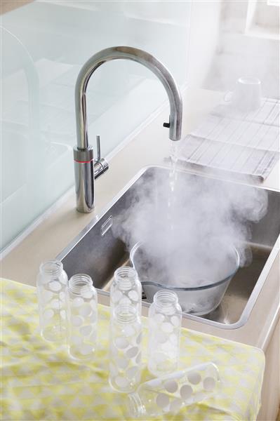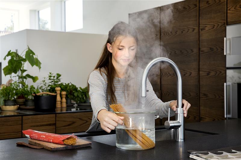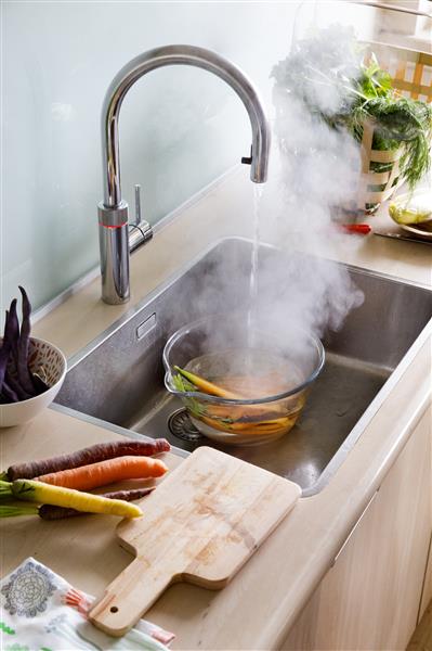 Om direct kokend water en warm water te kunnen leveren zodra u de kraan opent, wordt er met het Combi+ reservoir constant 7 liter water op 110 graden Celsius bewaard.